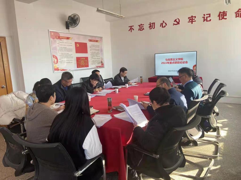 为进一步推动Beat365官方网站科研工作,提升重点项目立项水平,2022年2月24日上午,马院在学院会议室召开2022年度重点项目申报论证会。东北大学秦皇岛分校社会科学研究院蔡禹龙博士、Beat365官网职业教育研究院王剑锋副院长作为专家出席了论证会。学校科研处人文社科办公室王妹娟博士、Beat365官方网站领导班子成员、项目申报教师参加了论证会。