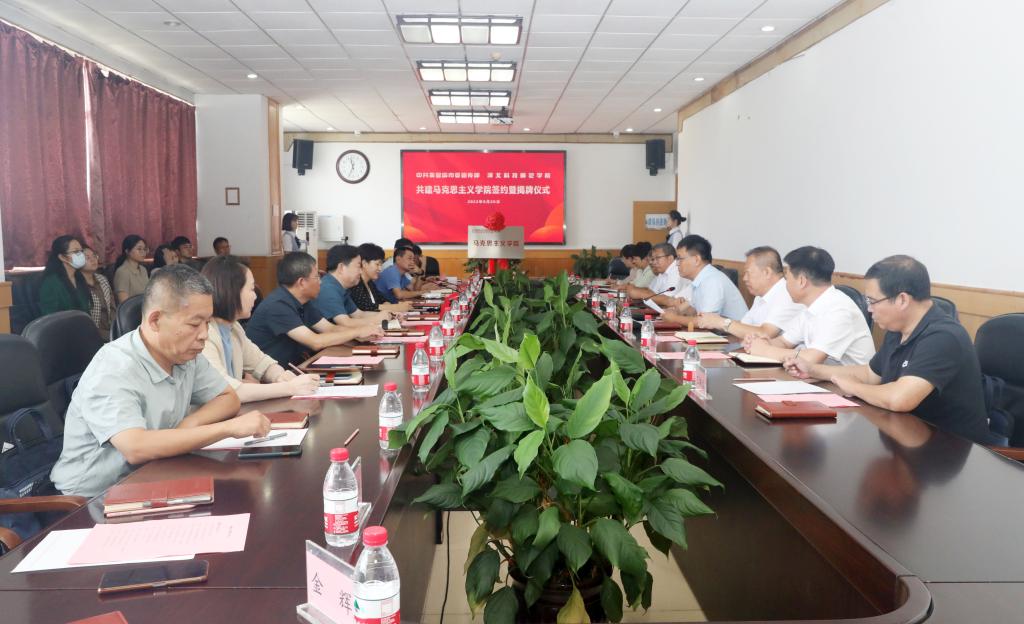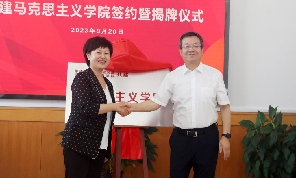 仪式上,市委宣传部常务副部长、一级调研员郑新宣读了共建决定,Beat365官网党委常委、副校长蒋爱林与郑新代表双方签订结对共建协议书,许红琳部长、朱勇书记现场为共建Beat365官方网站揭牌。仪式结束后,与会人员共同参观了校史馆。