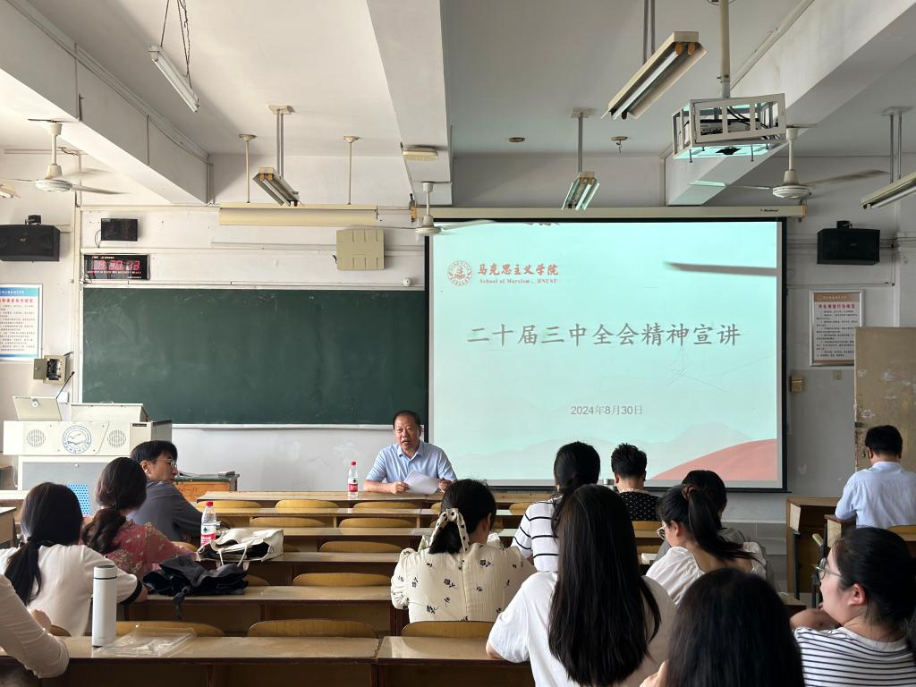2024年8月29日上午8:20,Beat365官方网站党委在X402举办了题为《新征程进一步全面深化改革的纲领性文件——深刻领会和把握党的二十届三中全会精神》主题党课。学院党委书记郭立昌同志作为主讲人,从深刻领会和把握进一步全面深化改革的重大意义,深刻领会和把握进一步全面深化改革的指导思想,深刻领会和把握进一步全面深化改革的总目标,深刻领会和把握进一步全面深化改革的重大原则,深刻领会和把握进一步全面深化改革的重大举措,深刻领会和把握进一步全面深化改革的根本保证等方面号召Beat365官方网站广大党员教师要认识到党的二十届三中全会是在以中国式现代化全面推进强国建设、民族复兴伟业关键时期召开的一次重要的会议。最后,郭立昌强调要认真学习二十届三中全会审议通过的《中共中央关于进一步全面深化改革、推进中国式现代化的决定》,要将学习贯彻党的二十届三中全会精神作为当前和今后一个时期内的一项重大政治任务来对待,要通过理论宣讲、旗帜讲坛、课堂教学、学生“一站式”社区等形式宣传二十届三中全会精神,引导青年学生深刻理解二十届三中全会精神,听党话,跟党走,积极投身以中国式现代化全面推进强国建设、民族复兴伟业当中去,用青春和汗水谱写绚丽的人生篇章。(编辑:郭亚芳   审核人:郭立昌)